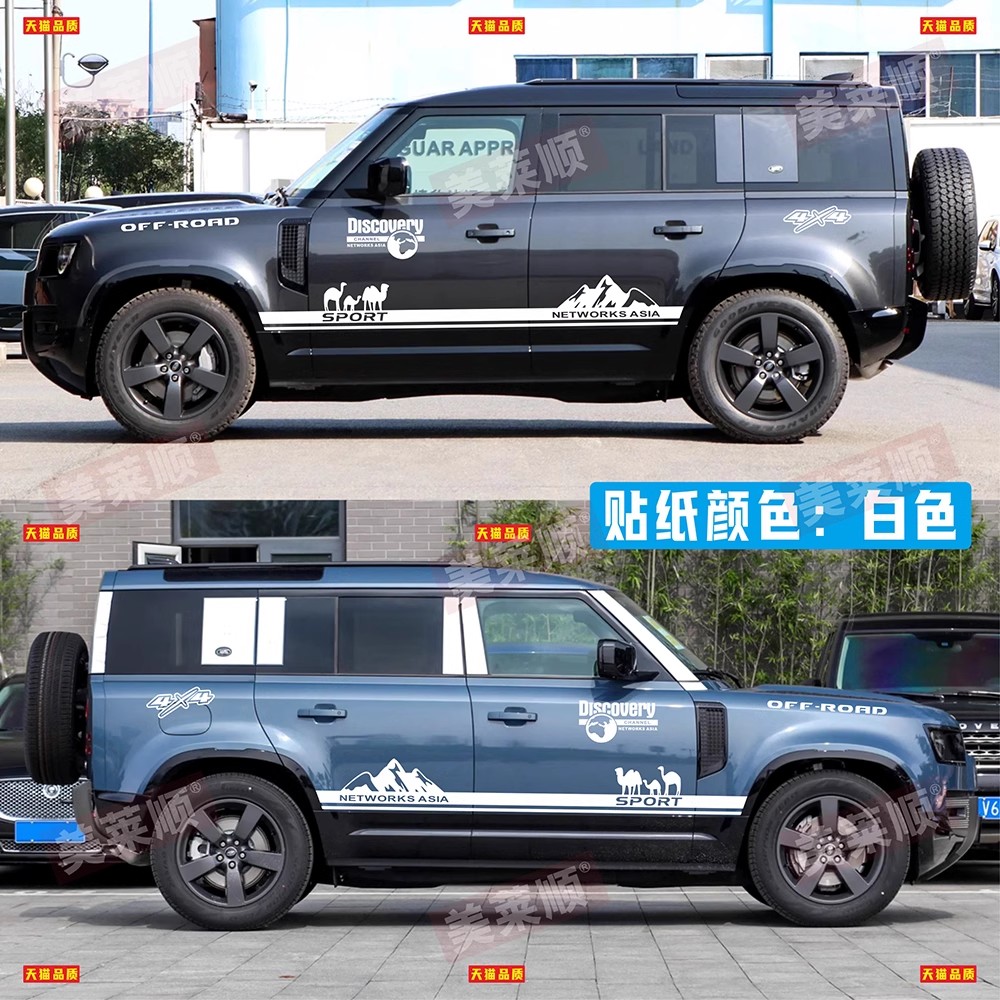 适用于路虎卫士110车贴拉花 90 130改装车身装饰越野侧裙彩条贴纸