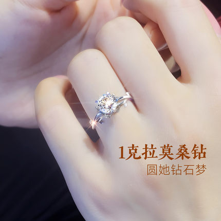 999纯银玫瑰花钻戒莫桑钻银戒指女情侣对戒结婚婚戒女戒送女朋友