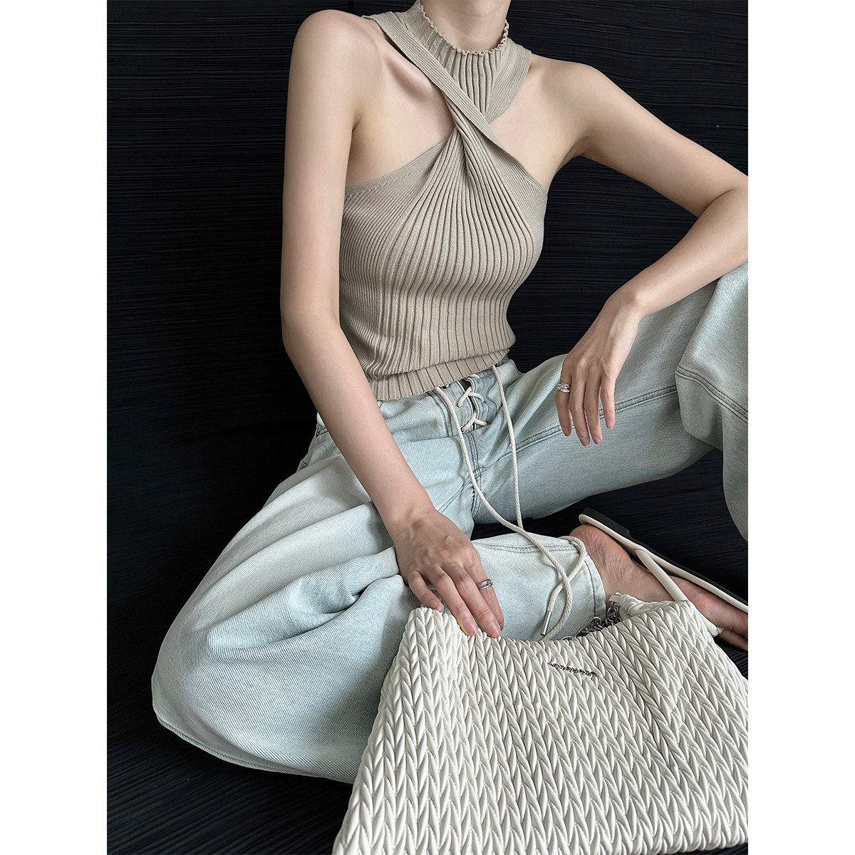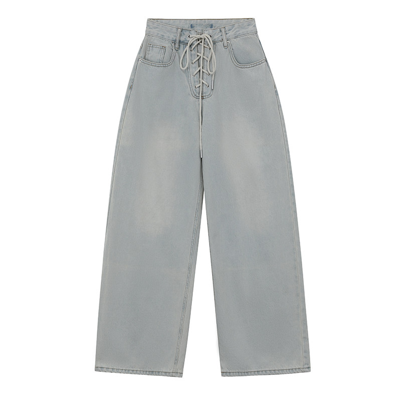 新款小众设计感门襟绑带牛仔裤