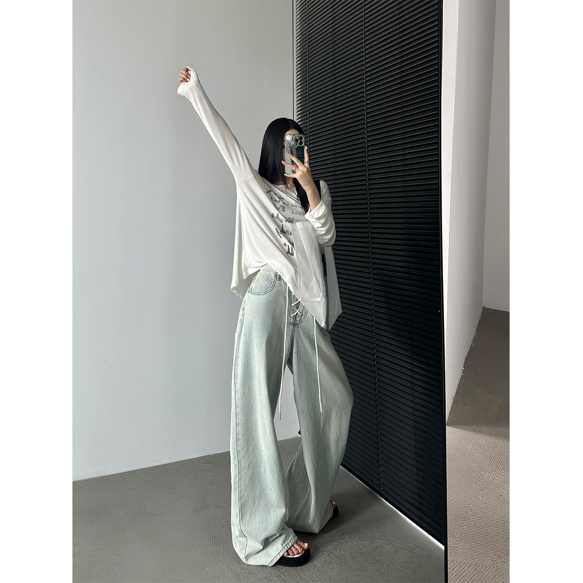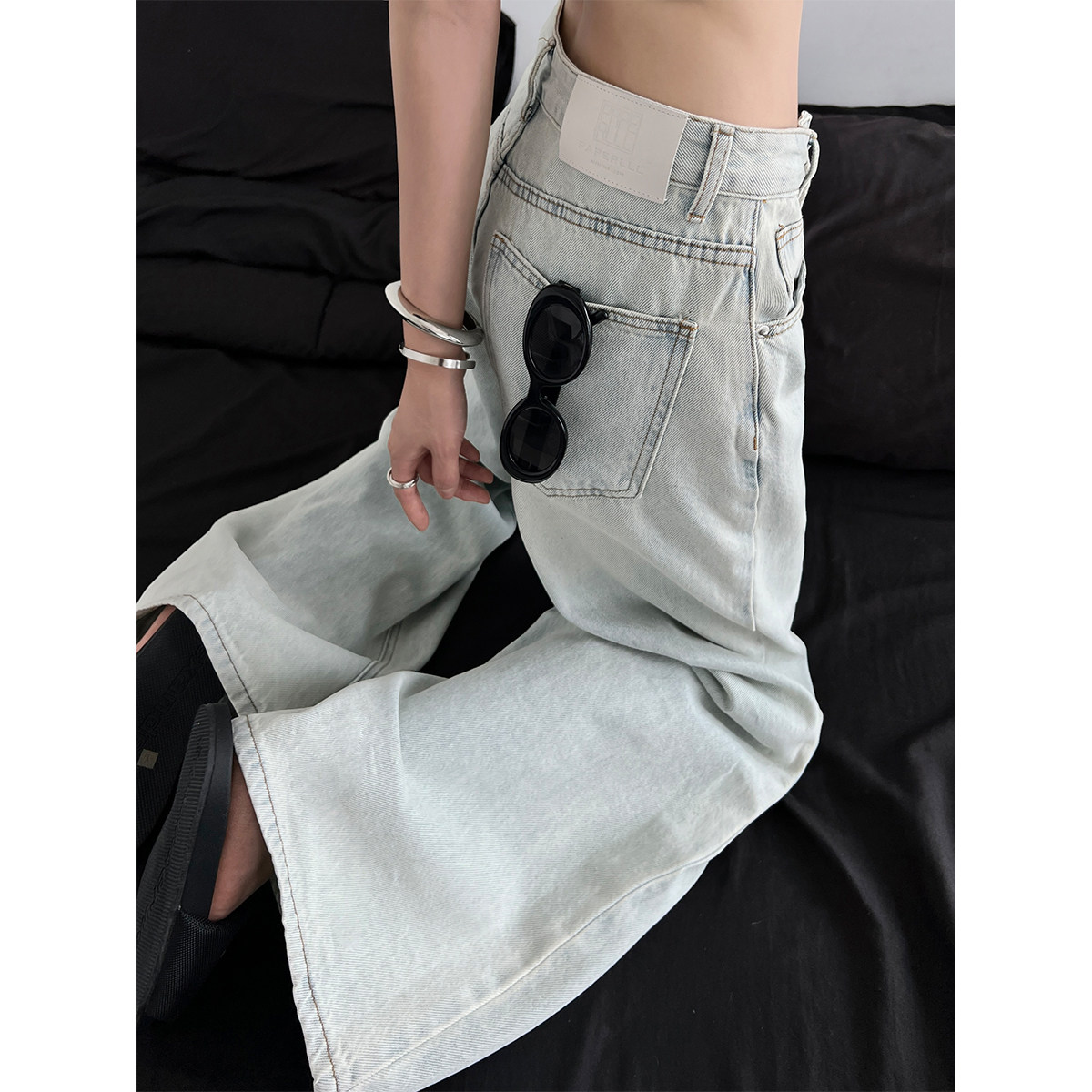 PAPERLLL辛间2025新款设计感门襟绑带牛仔裤女夏天薄款阔腿直筒裤
