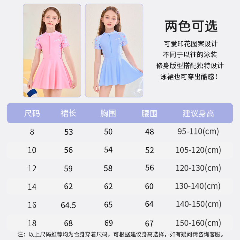 贵人鸟儿童泳衣2025新款女孩连体中大童防晒保守专业训练泳装全套