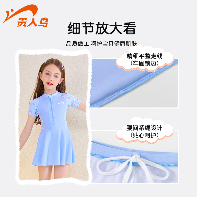贵人鸟儿童女孩连体防晒泳衣