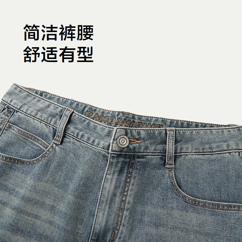 HLA/海澜之家panda wowo熊猫牛仔九分裤25春夏新款宽松锥形裤男士