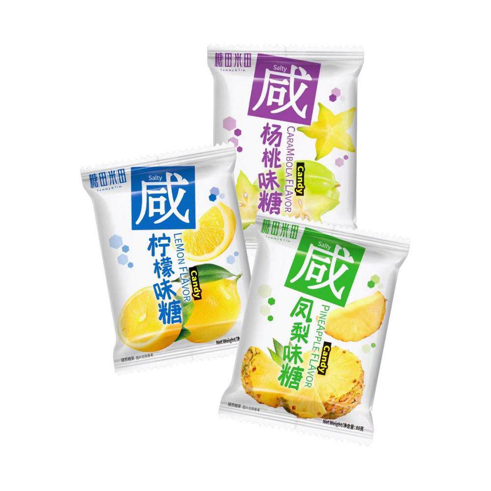 糖田米田咸味糖水果味凤梨柠檬杨桃味咸糖果儿童零食休闲零食