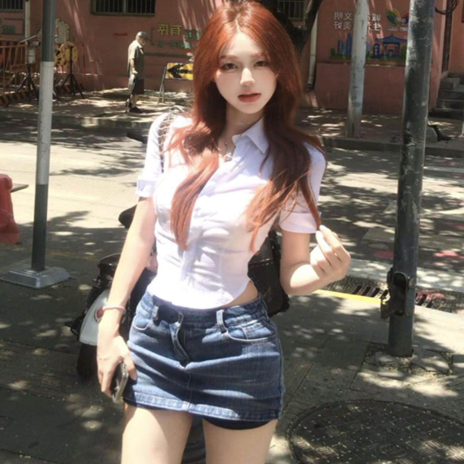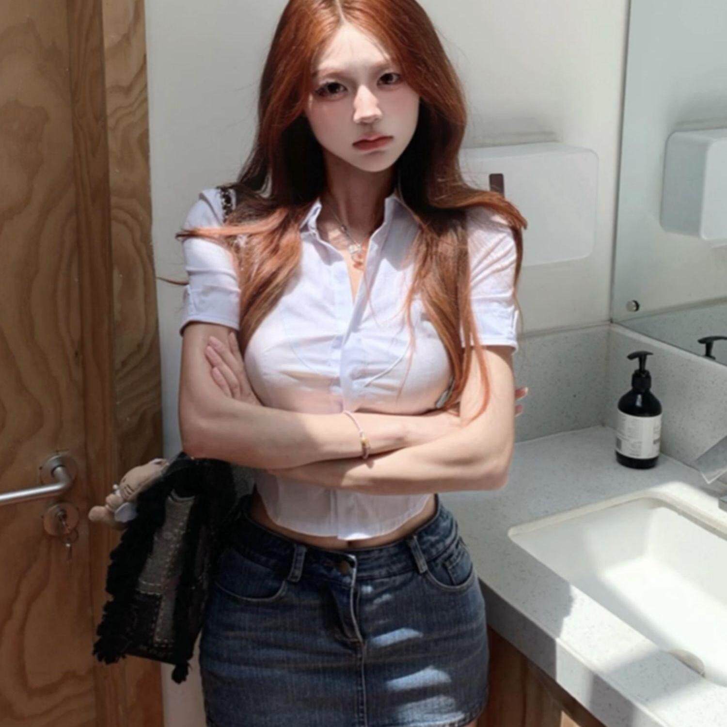 原创jk制服短袖收腰白色衬衫女学院风收腰显瘦衬衣辣妹性感上衣秋