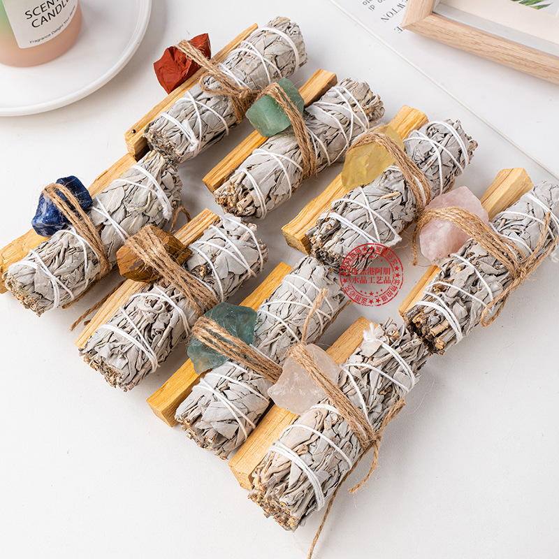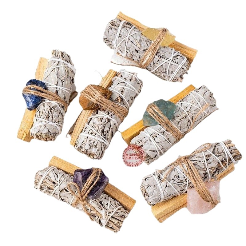 加州白鼠尾草秘鲁圣木条水晶原矿石香薰套装捆绑香薰杖净化空间