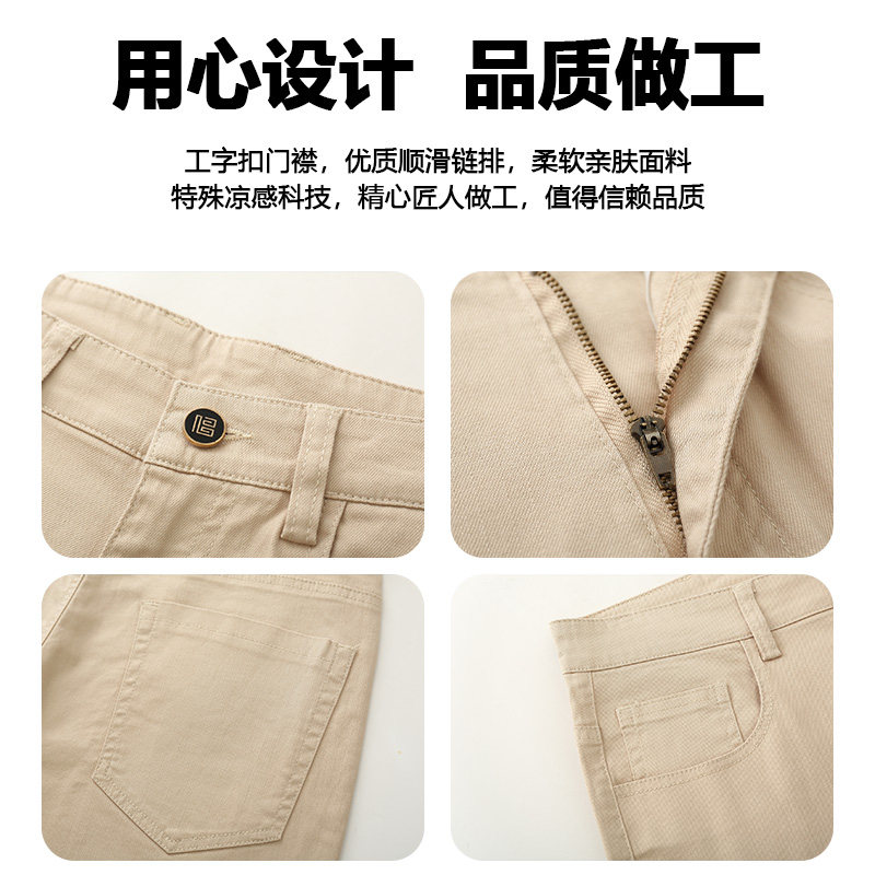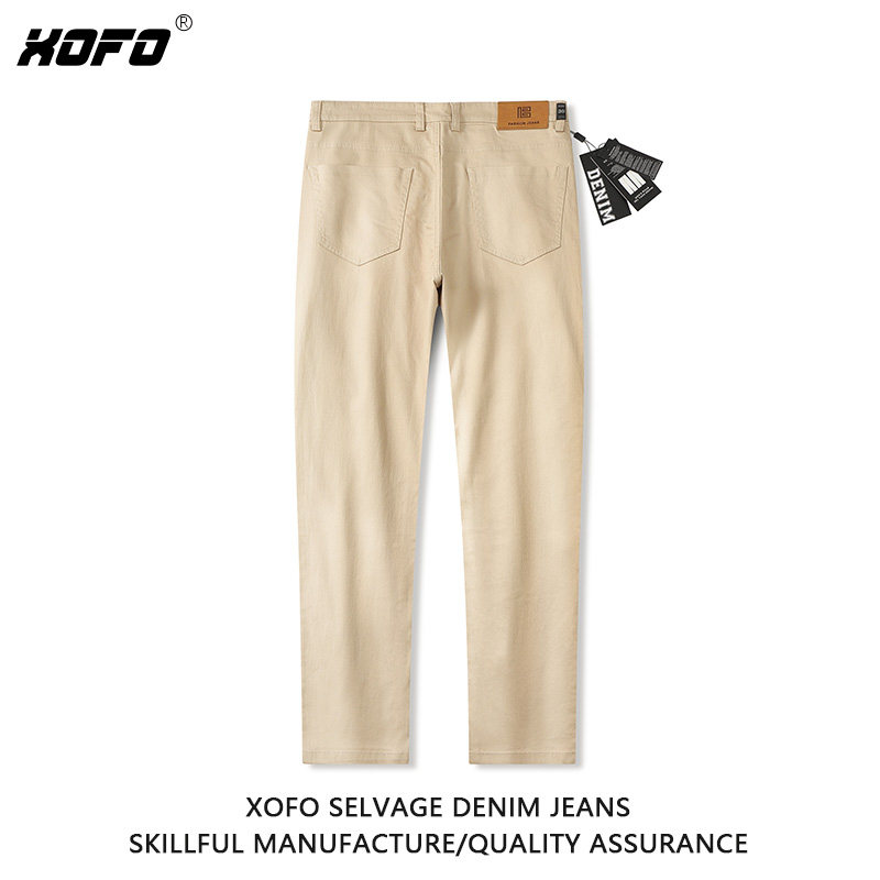 【定制裤长】新品休闲舒适卡其色修身直筒小脚牛仔裤男士薄款裤子