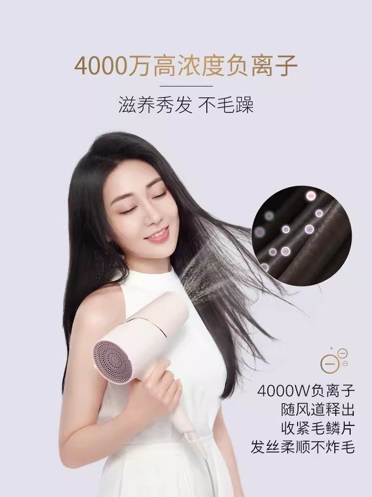 飞利浦电吹风机BHD538家用负离子护发大功率速干智能恒温风筒折叠