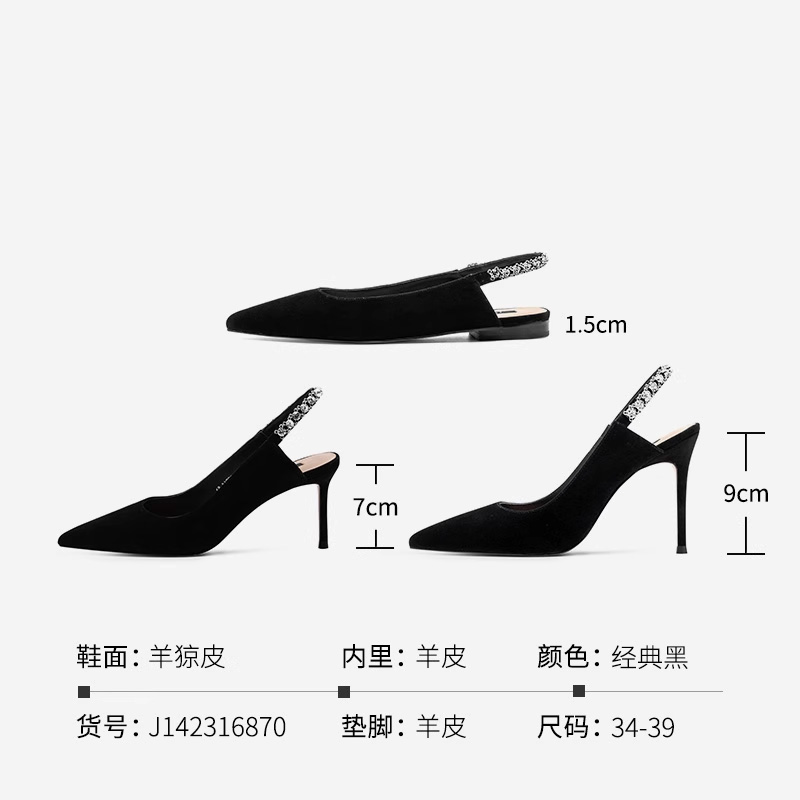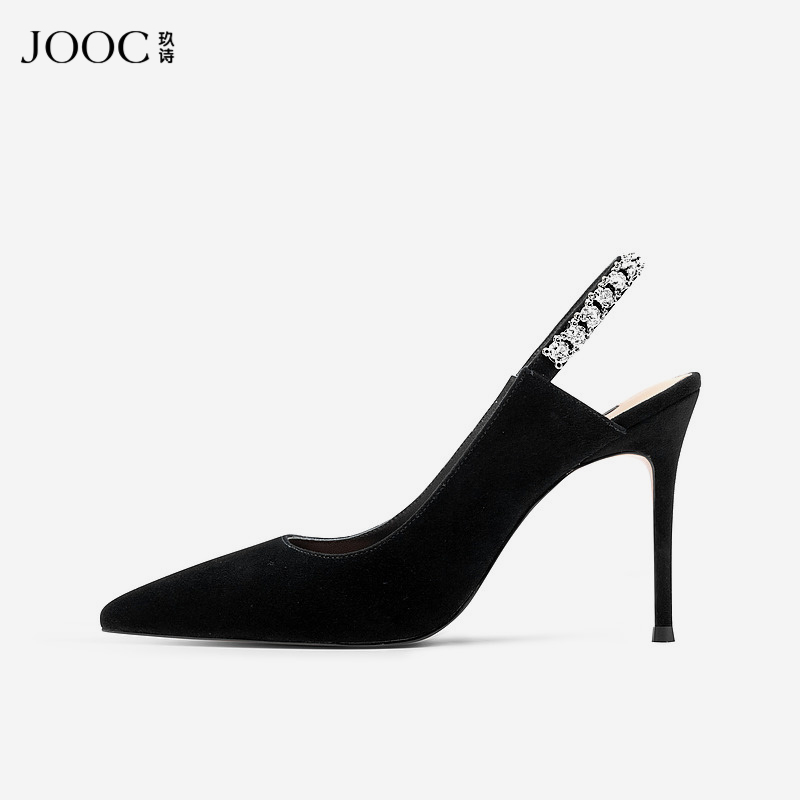 JOOC玖诗高跟鞋女当季热卖新款后空性感尖头名媛细跟水钻单鞋