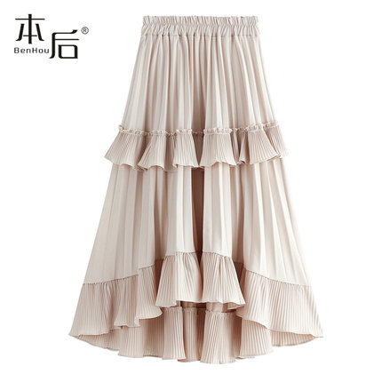 8229 不规则蛋糕裙半身裙春秋女a字百褶新款显瘦鱼尾设计感小众