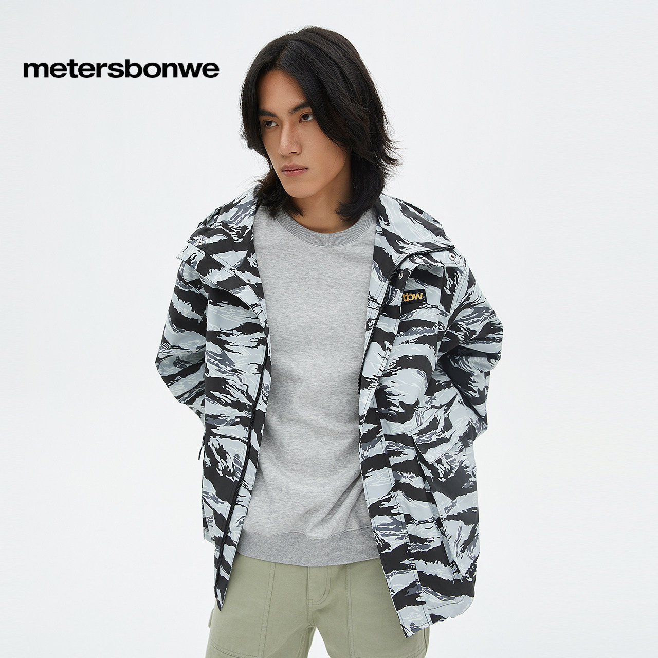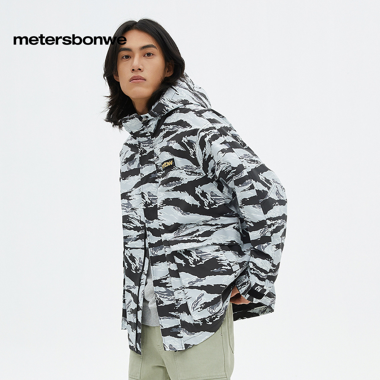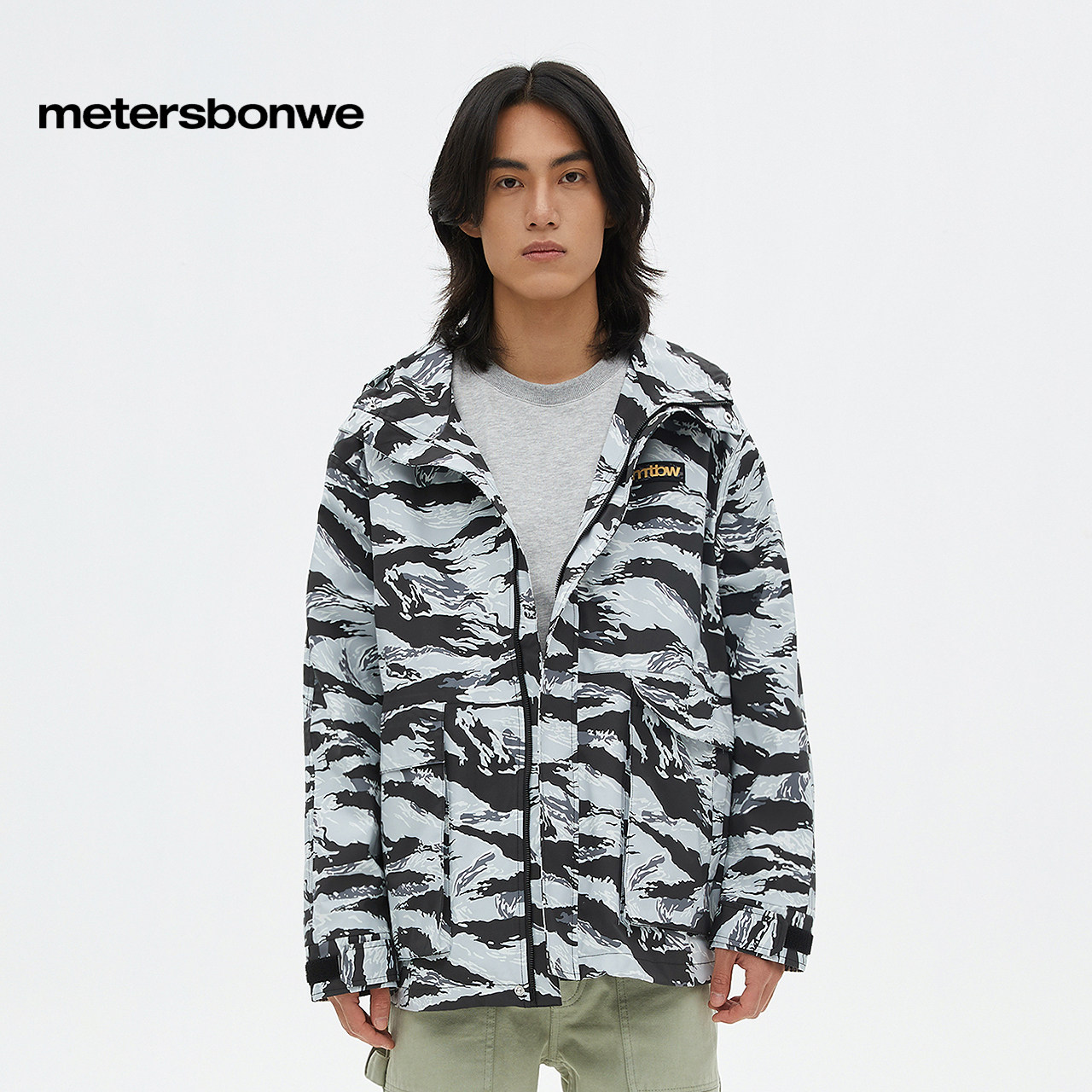 美特斯邦威夹克男士春季宽松简约时尚潮流休闲连帽外套舒适百搭