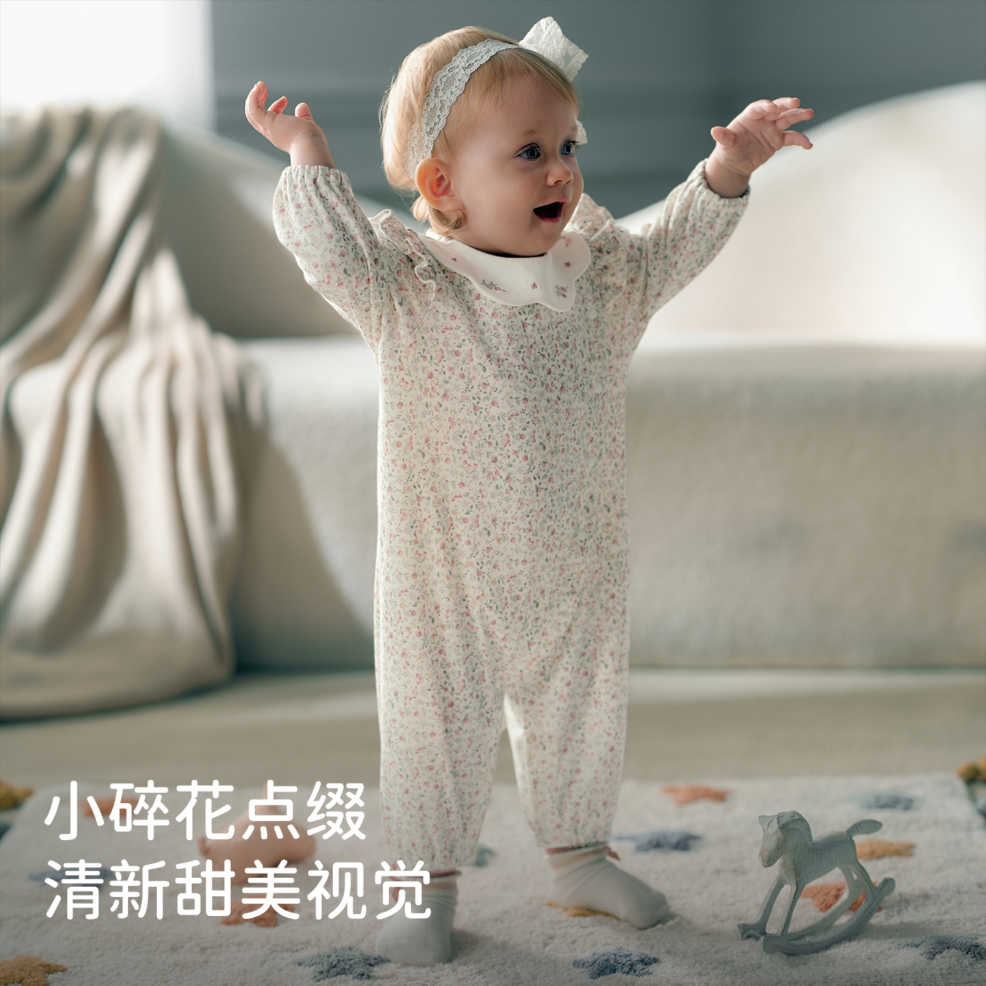 戴维贝拉女宝宝衣服2025秋装新生儿抗菌连体衣纯棉哈衣婴儿爬服
