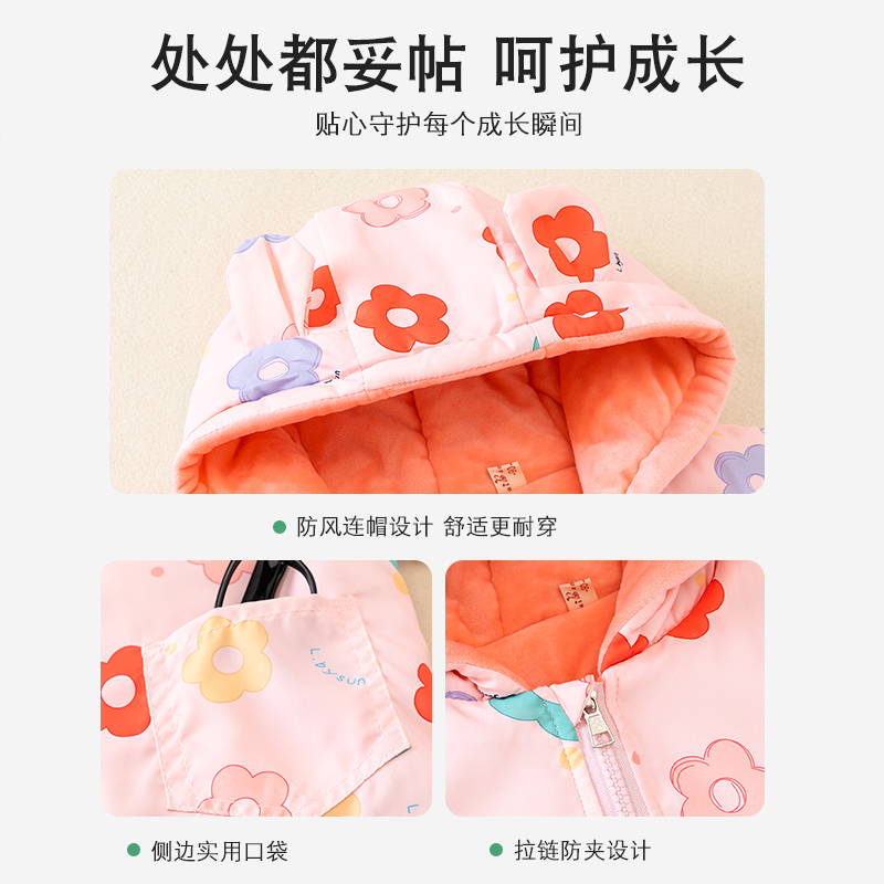 女童加绒加厚外套秋冬款婴儿宝宝棉服儿童夹棉衣服初冬装防风粉色