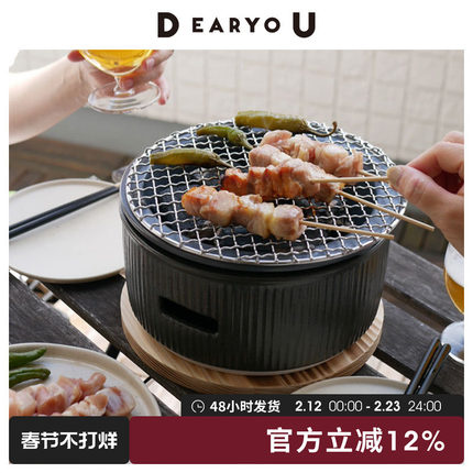 LOLO日本进口陶制烧烤炉迷你炭火烤肉炉家用桌面碳炉围炉煮茶日式