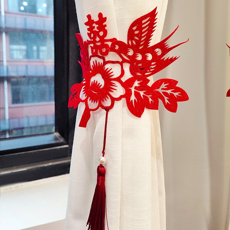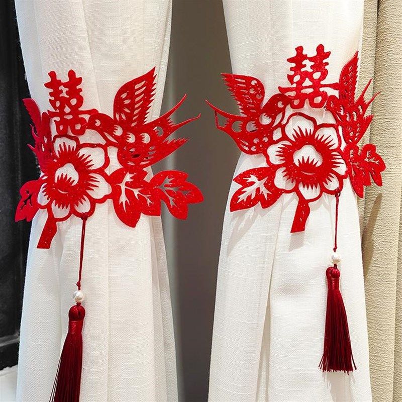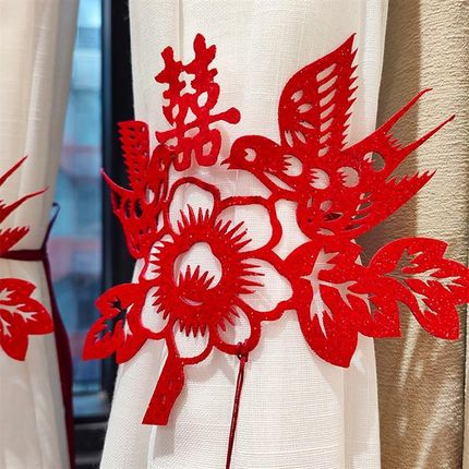 婚房布置套装结婚礼装饰新房卧室客厅男女方喜鹊窗帘花装饰绑带