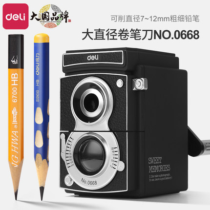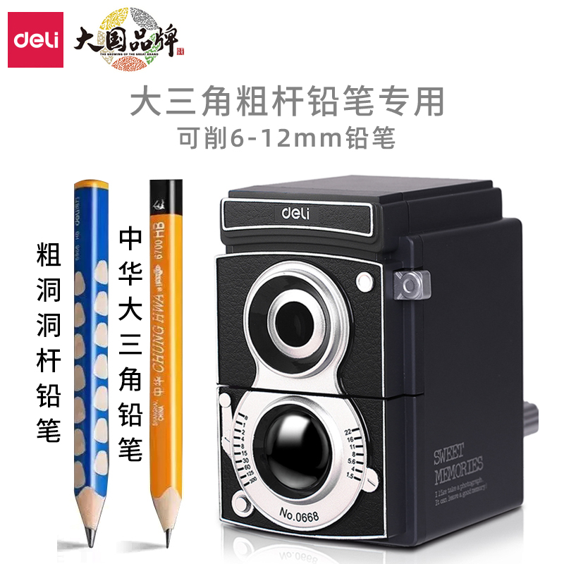 得力卷笔刀大口径粗杆特粗加粗洞洞铅笔削笔器手摇转笔刀钻刨儿童