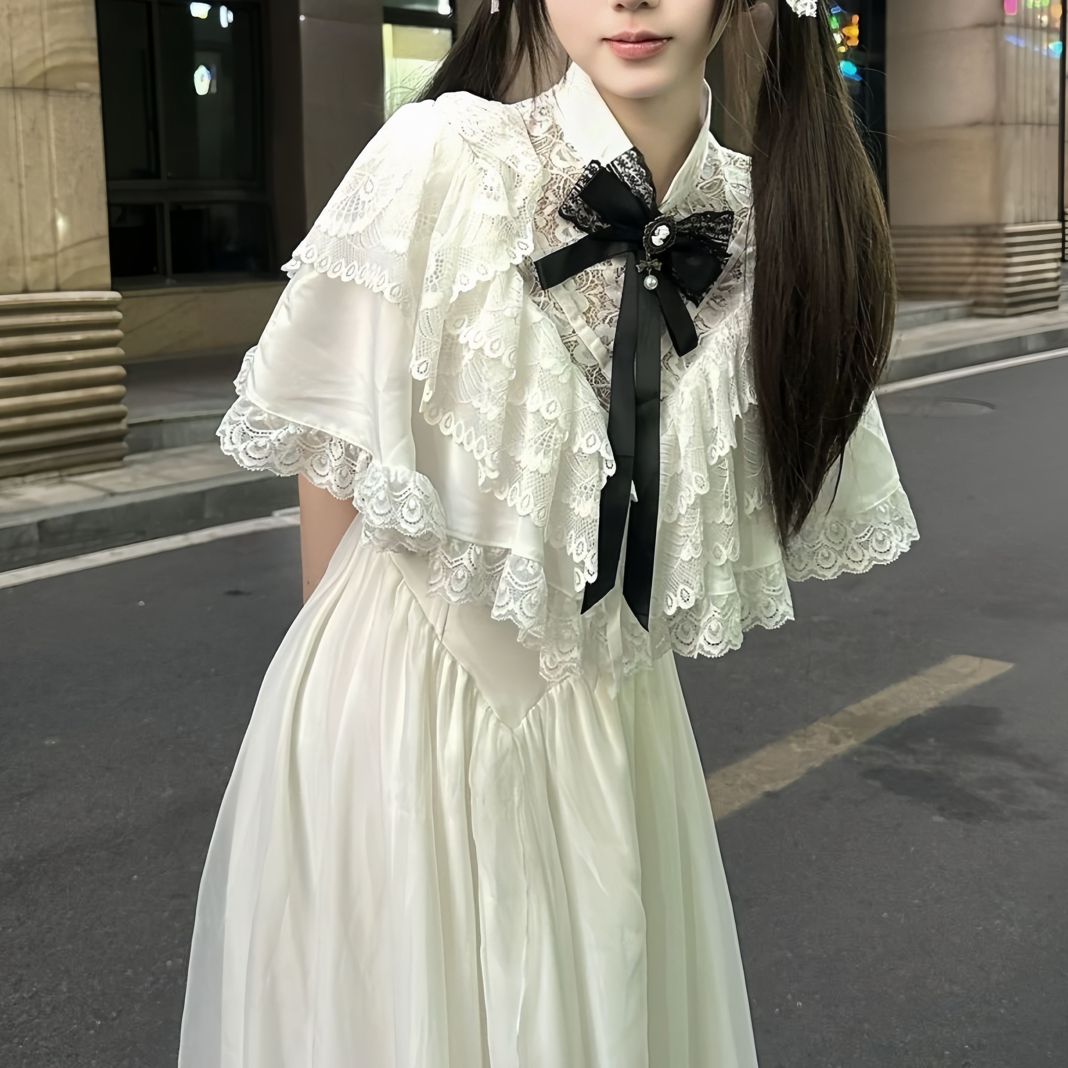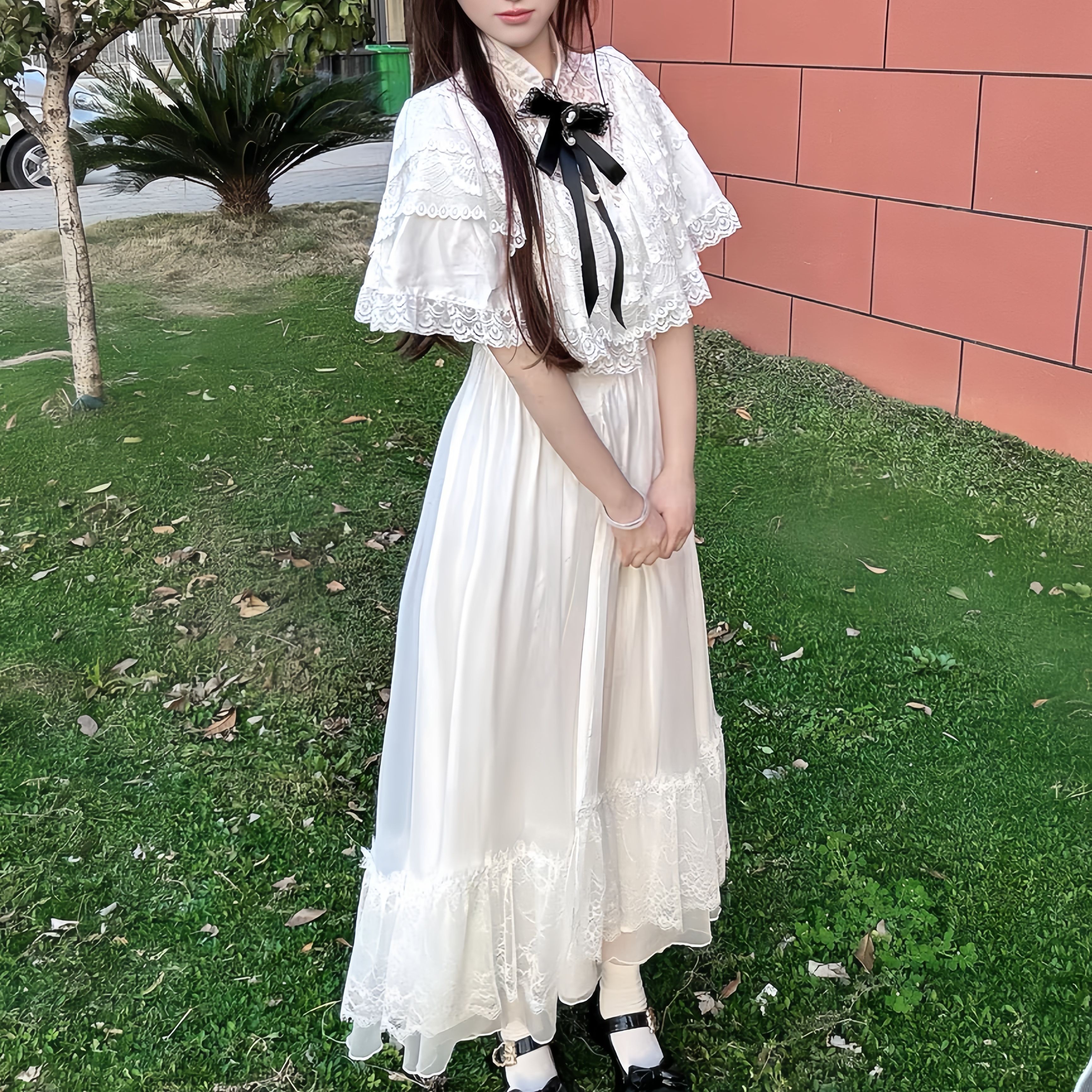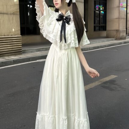 蕾服连衣裙lolita茶歇法式温柔风白色斗篷连衣裙在逃公主古着裙