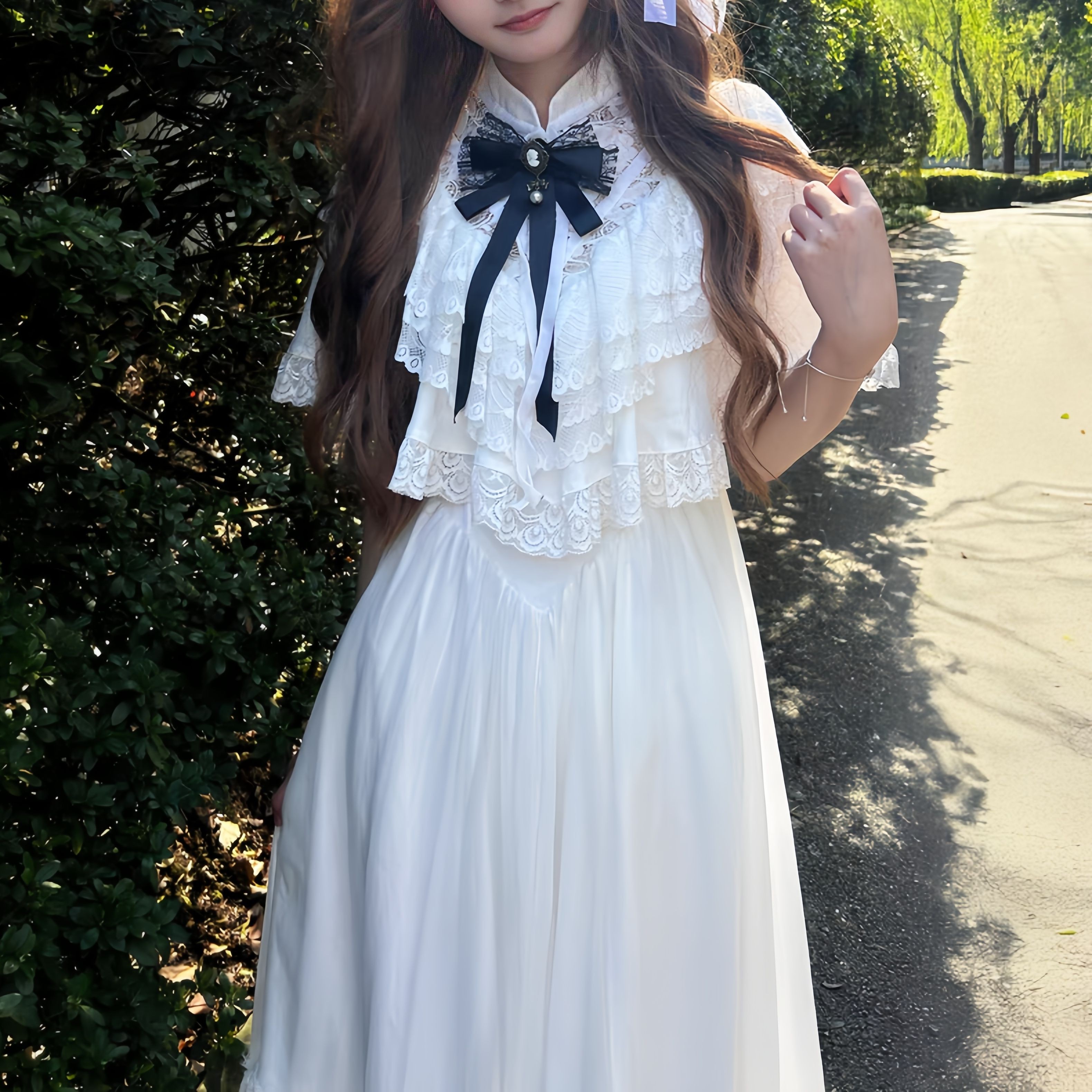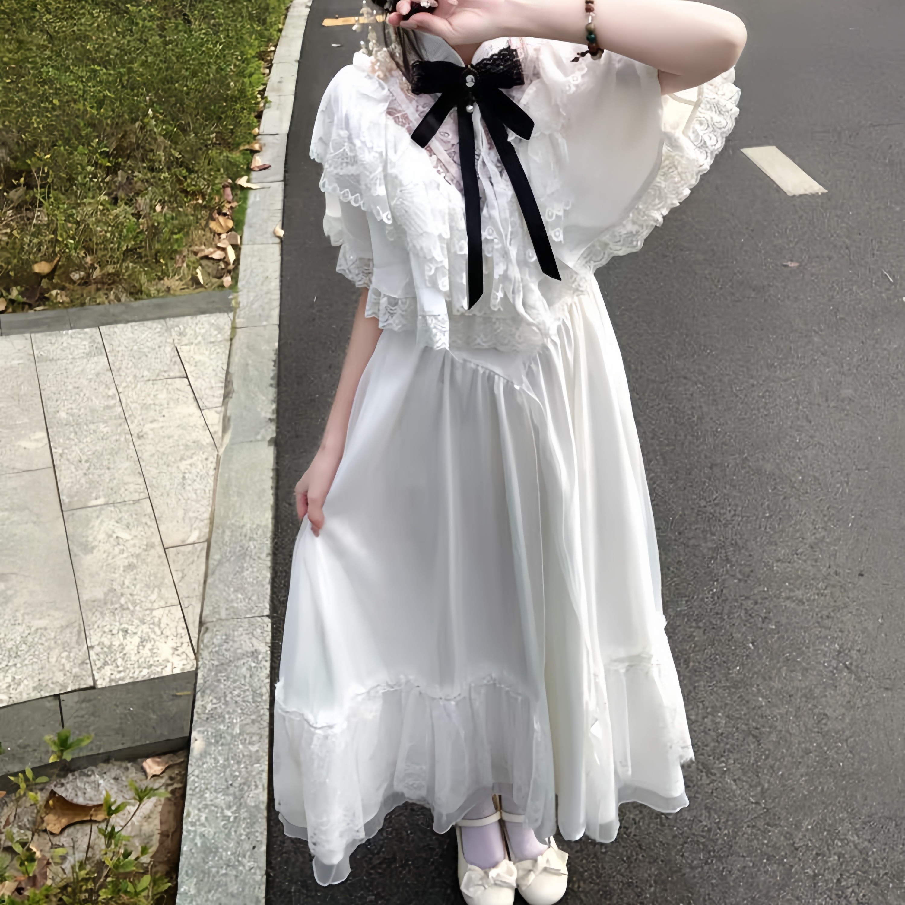 雷系连衣裙lolita白色斗篷裙子