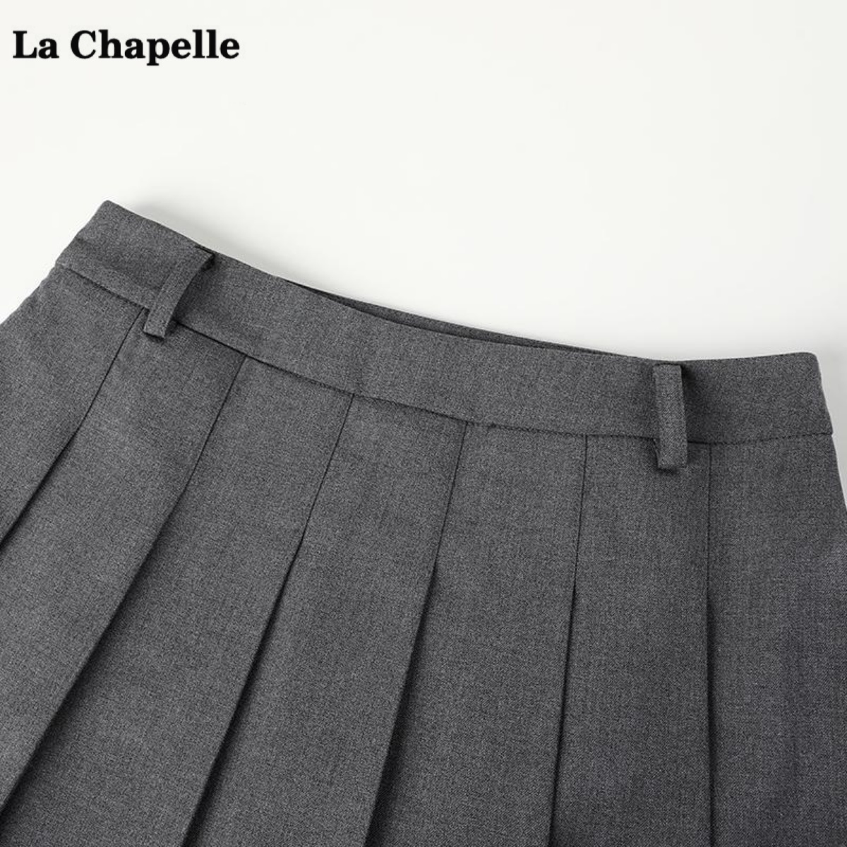 拉夏贝尔/La Chapelle高腰显瘦百褶半身裙女春季新款百搭A字短裙