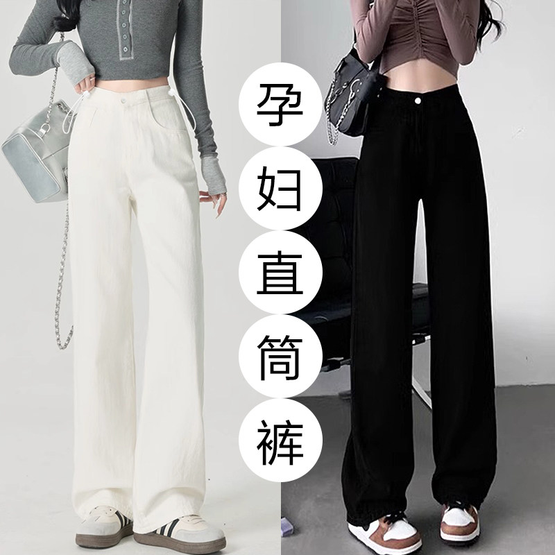 猫人孕妇裤子秋冬款外穿2025新款不勒肚子加绒牛仔阔腿裤孕妇秋装