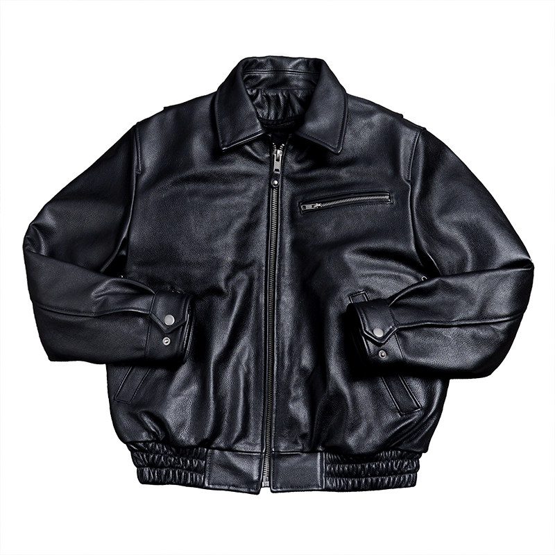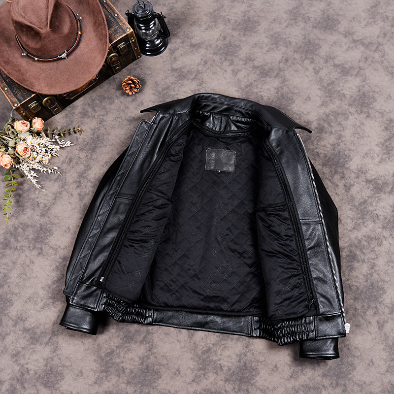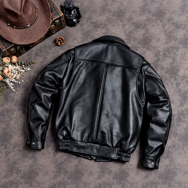 港风阔版加棉飞行服头层牛皮可脱卸内胆皮夹克大码加厚真皮皮衣男
