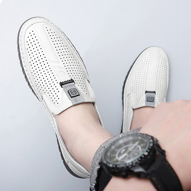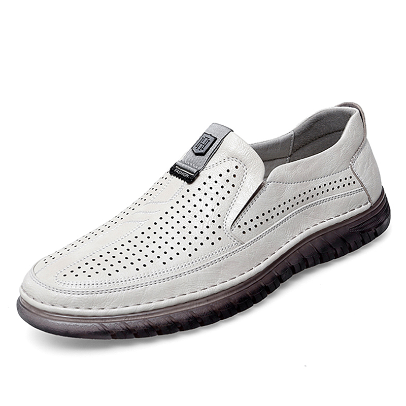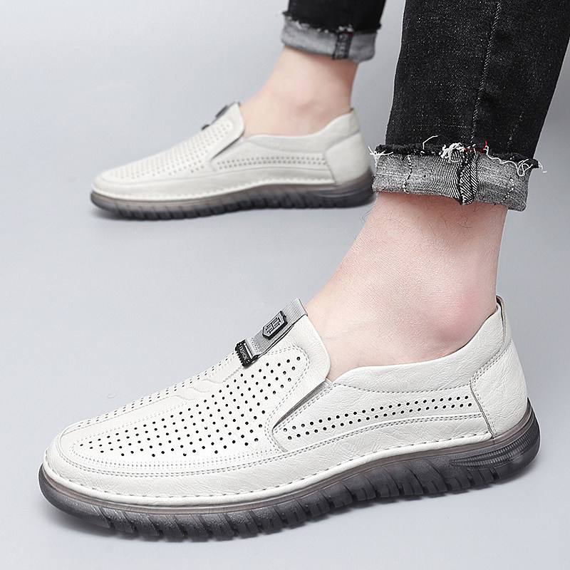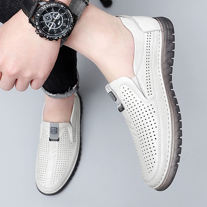 牛筋底休闲镂空皮鞋男款真皮夏季洞洞凉鞋男士软底软皮透气豆豆鞋