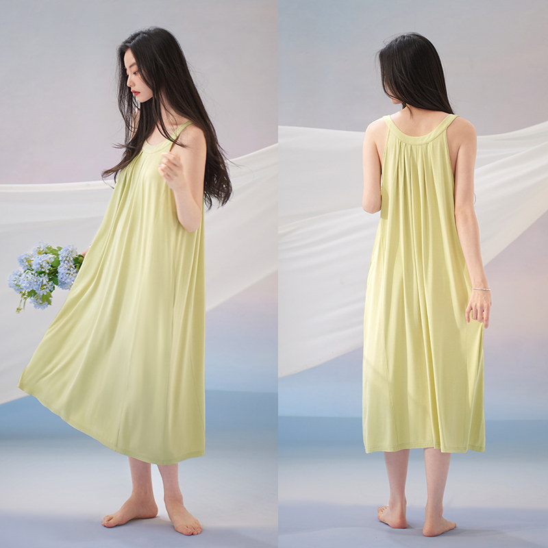 轩靓【带胸垫】吊带睡裙女夏季薄款莫代尔长裙冰丝凉感睡衣连衣裙