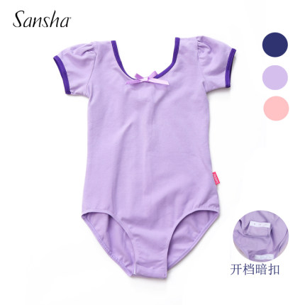 Sansha法国三沙儿童芭蕾舞蹈服练功服短袖蝴蝶结连体服考级服开档