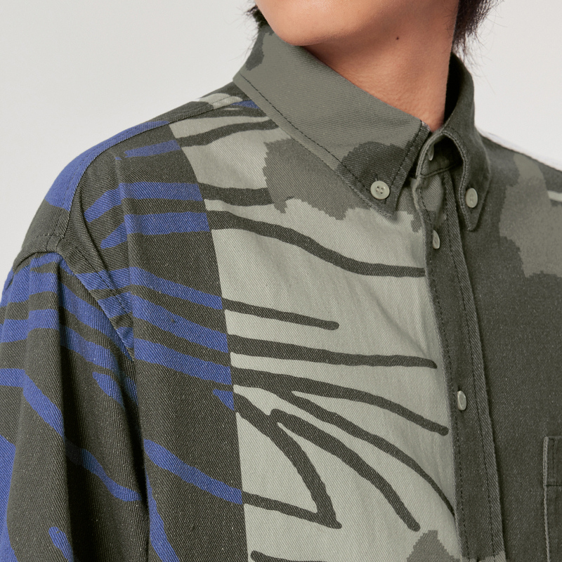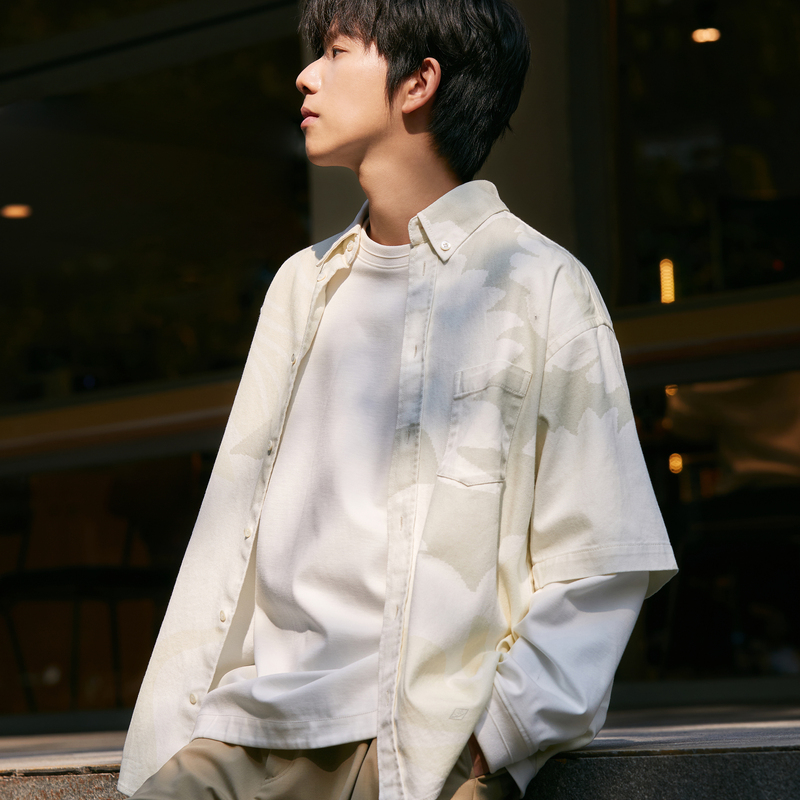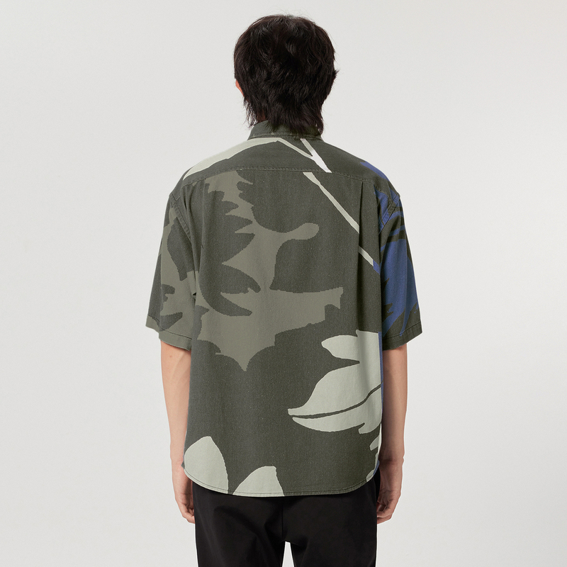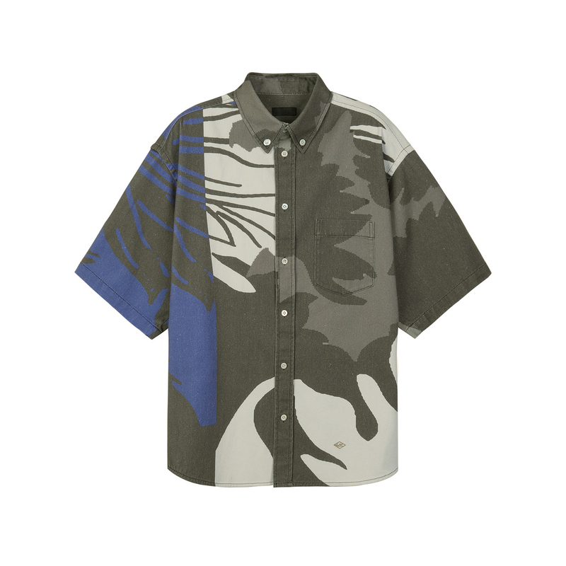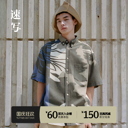 速写男装早春折扣新款衬衣短袖棉质个性撞色设计街头时尚休闲潮流