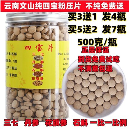 文山四宝片正品500g正宗云南三七粉压片丹参花旗参石斛