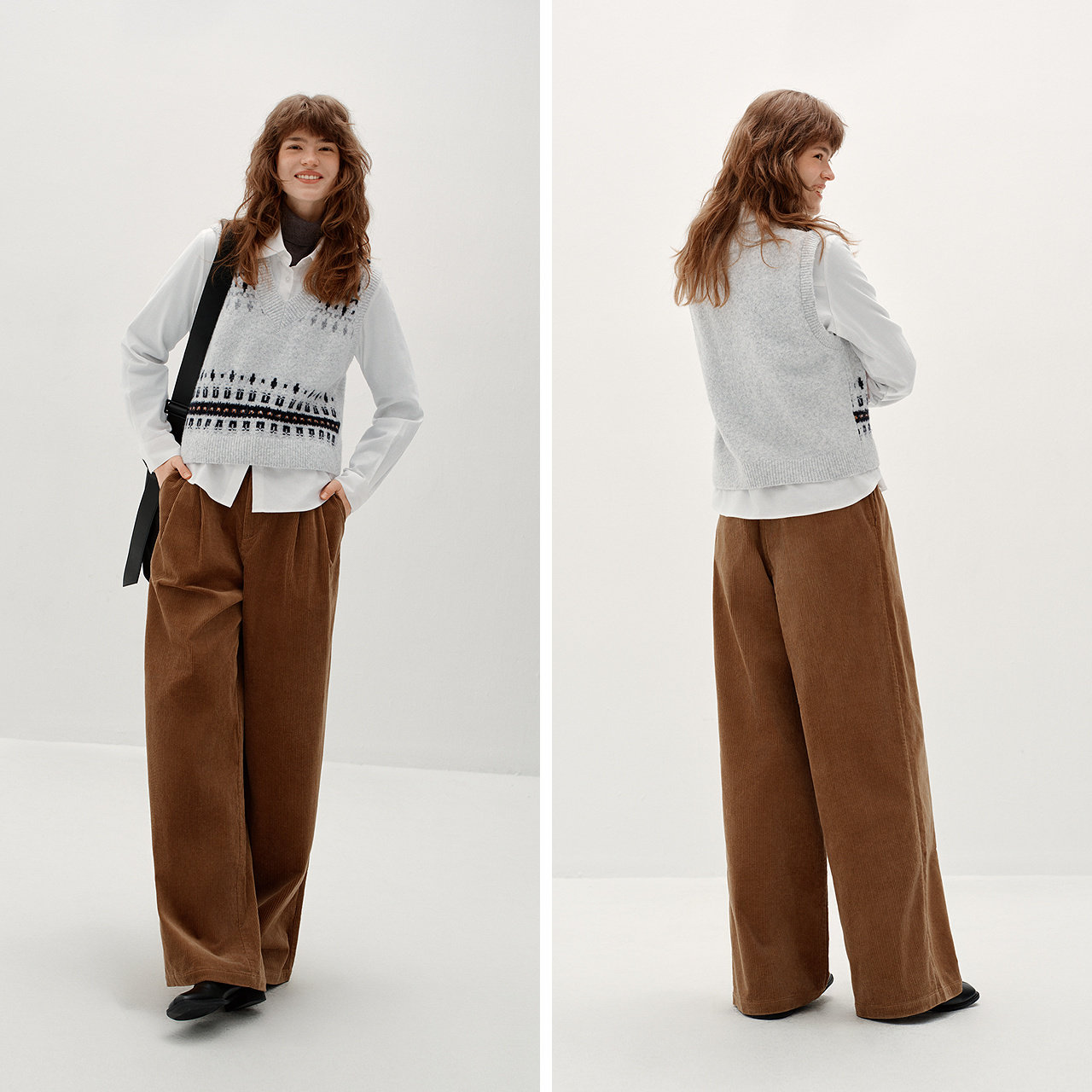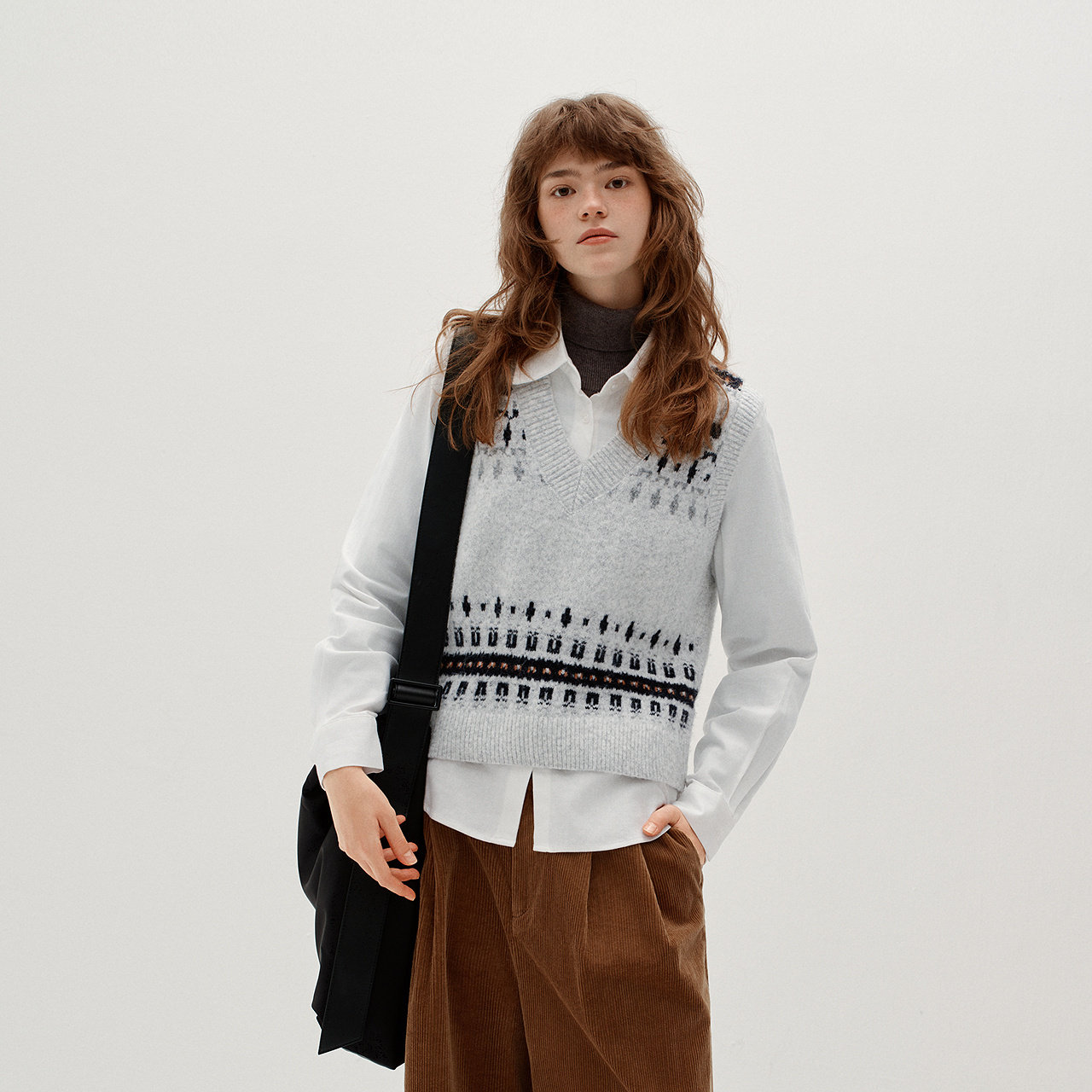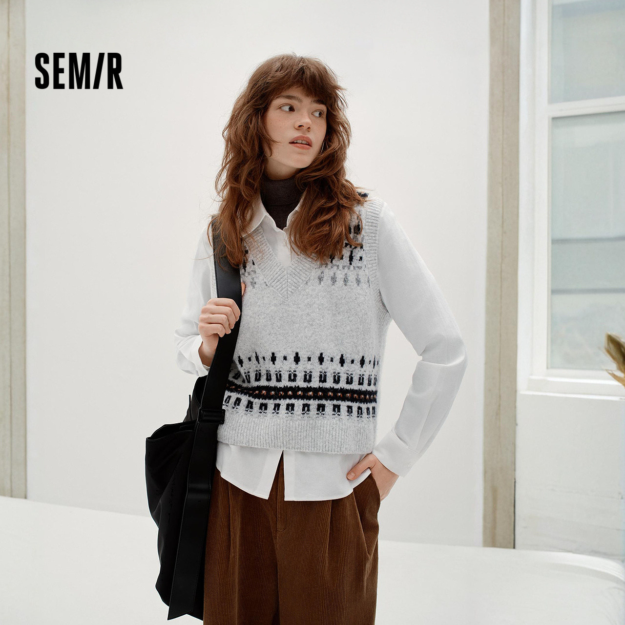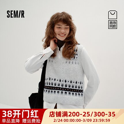 商场同款|森马长袖衬衫女冬费尔岛短背心磨毛衬衣2025新款两件套M