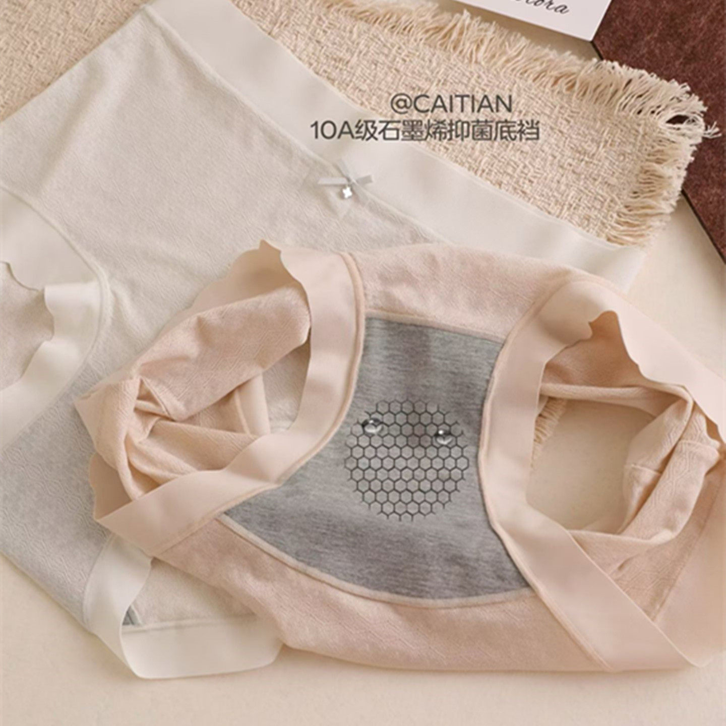 彩田女石墨烯无痕网纱三角裤