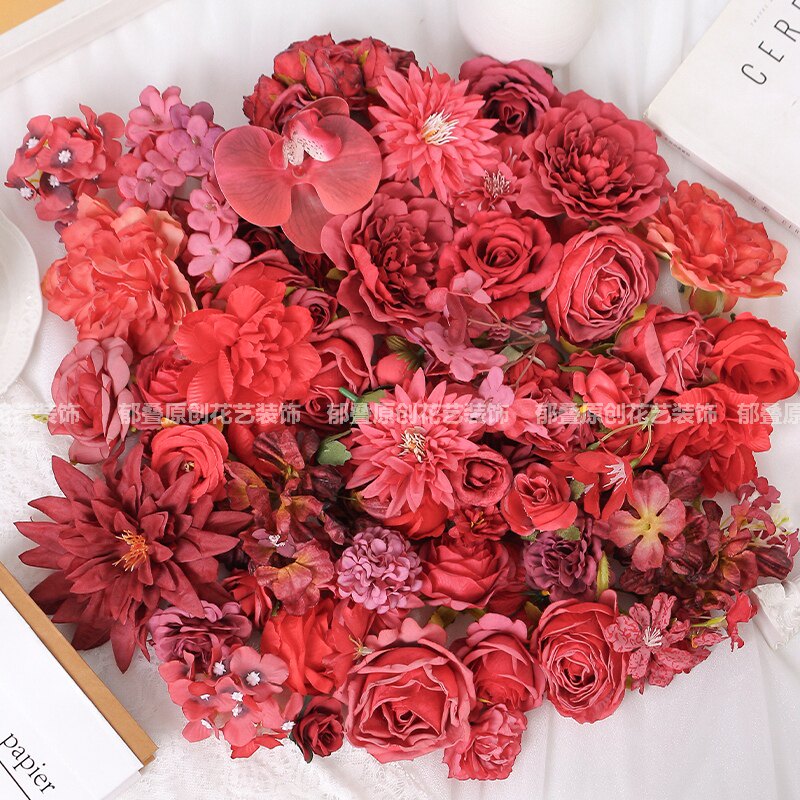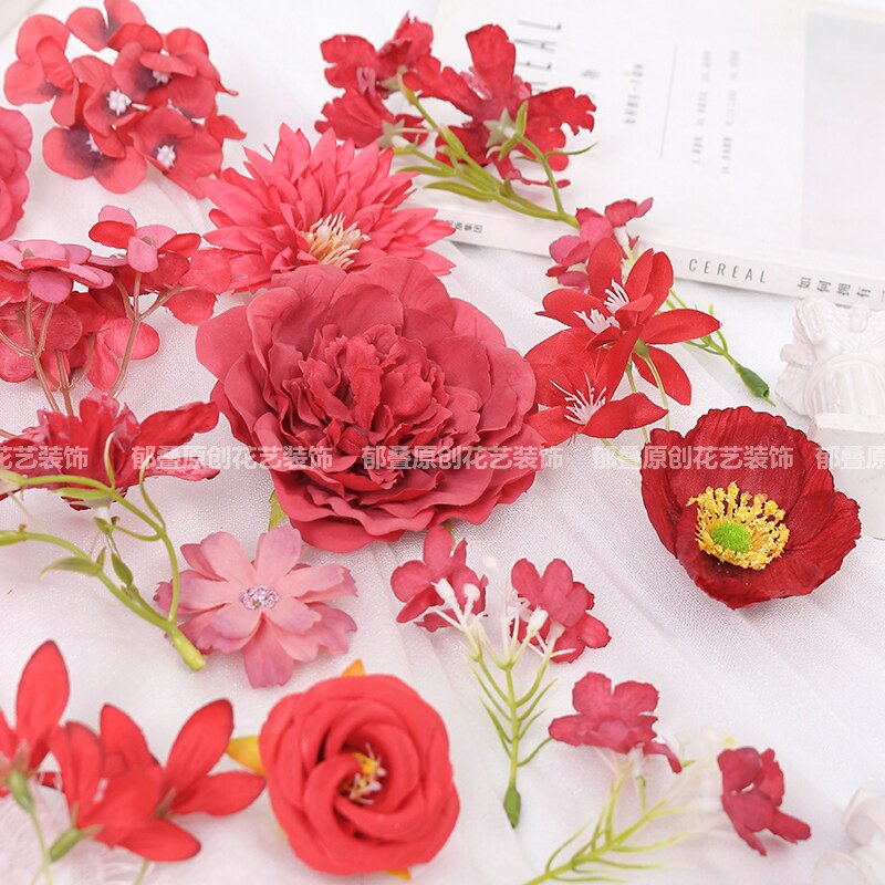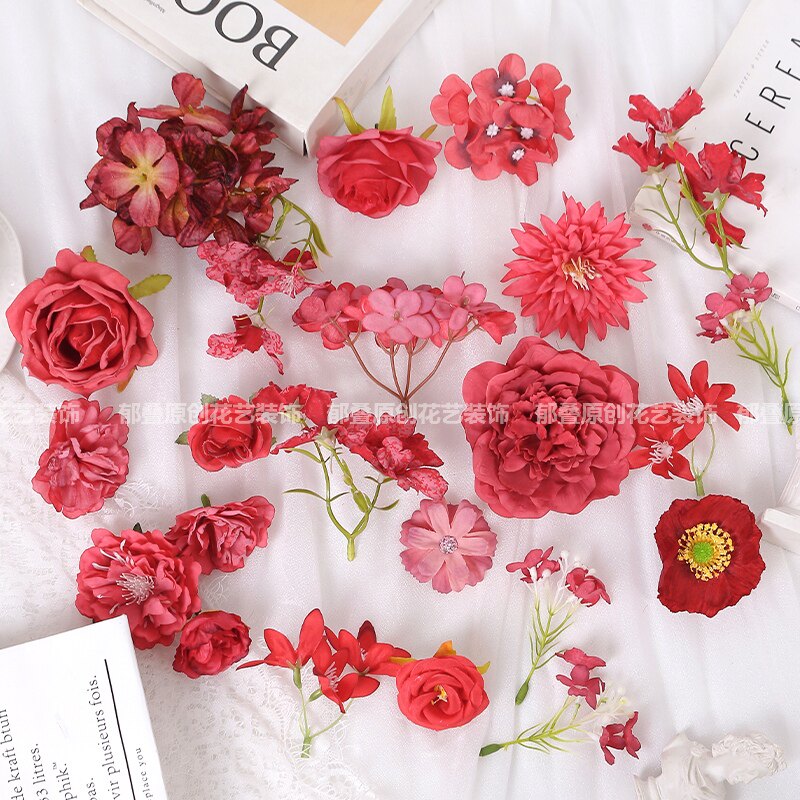 红色系仿真花朵 玫瑰花 绢花假花DIY手工汉服头饰痛包婚庆装饰花
