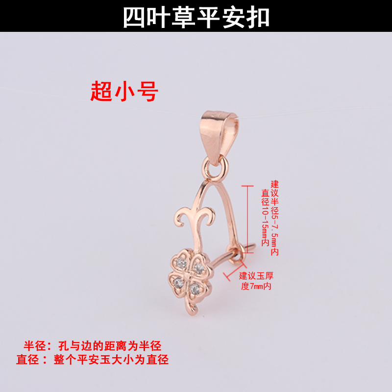 S925纯银 DIY扣子超小号四叶草平安扣吊坠扣头翡翠玉项链空托夹扣