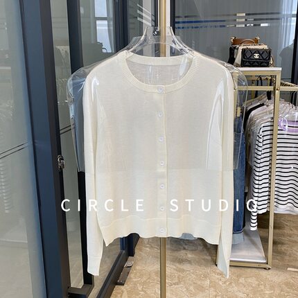 高阶早秋细支羊毛针织衫圆领开衫长袖外搭上衣女通勤气质宽松短款
