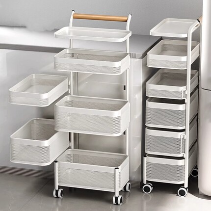 厨房多功能可拆卸框夹缝置物架落地旋转零食小推车蔬菜篮子收纳柜