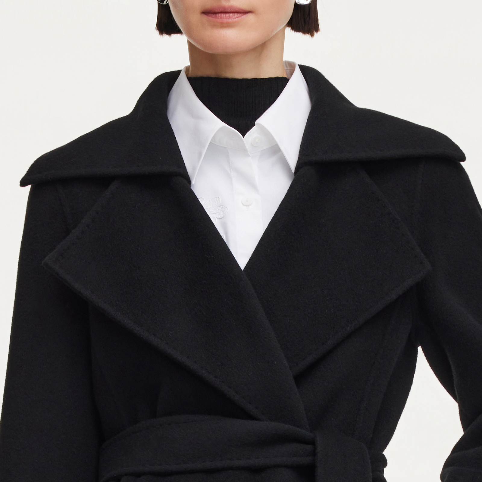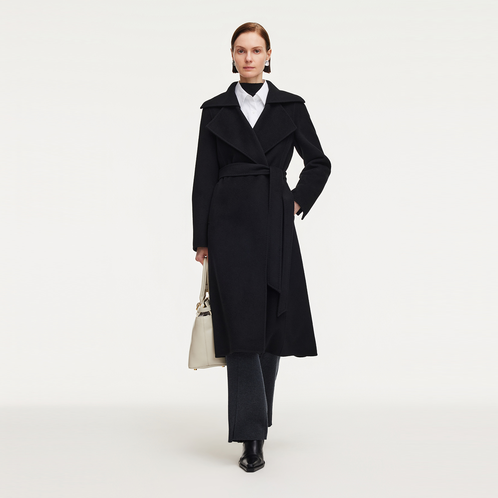歌莉娅冬季新品羊绒羊毛翻领收腰双面呢大衣配腰带1ECL6N2V0