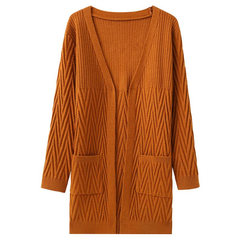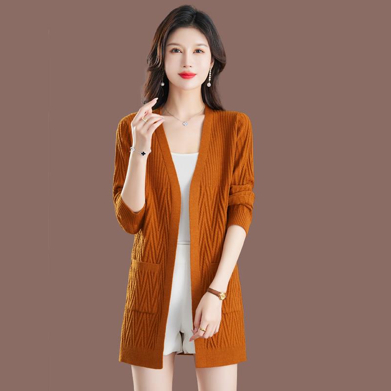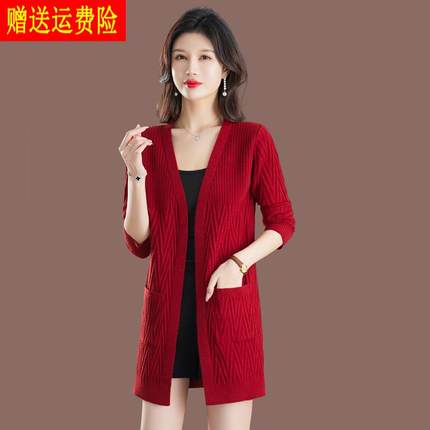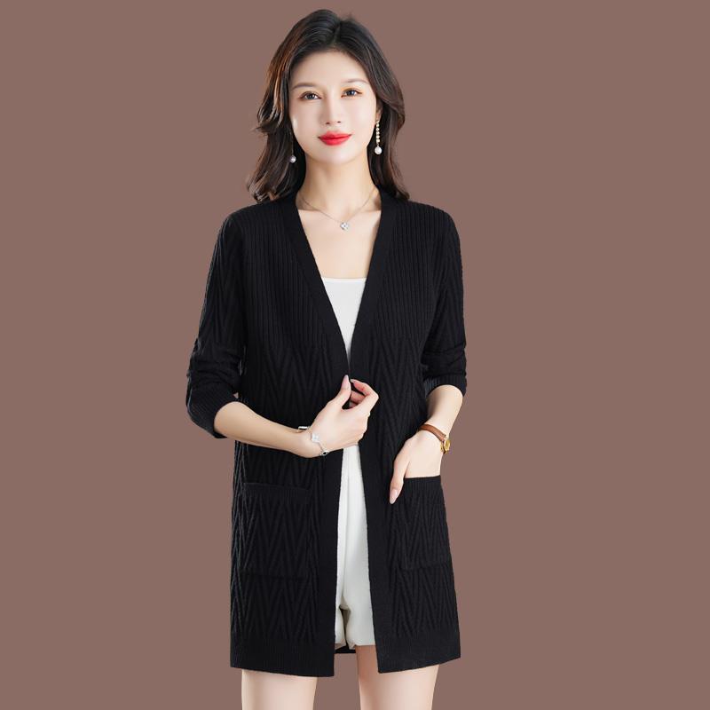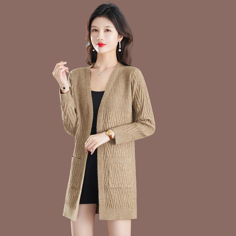 高端品牌中长款针织外皮女秋季新款大码显示休闲毛衣开衫外套女