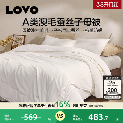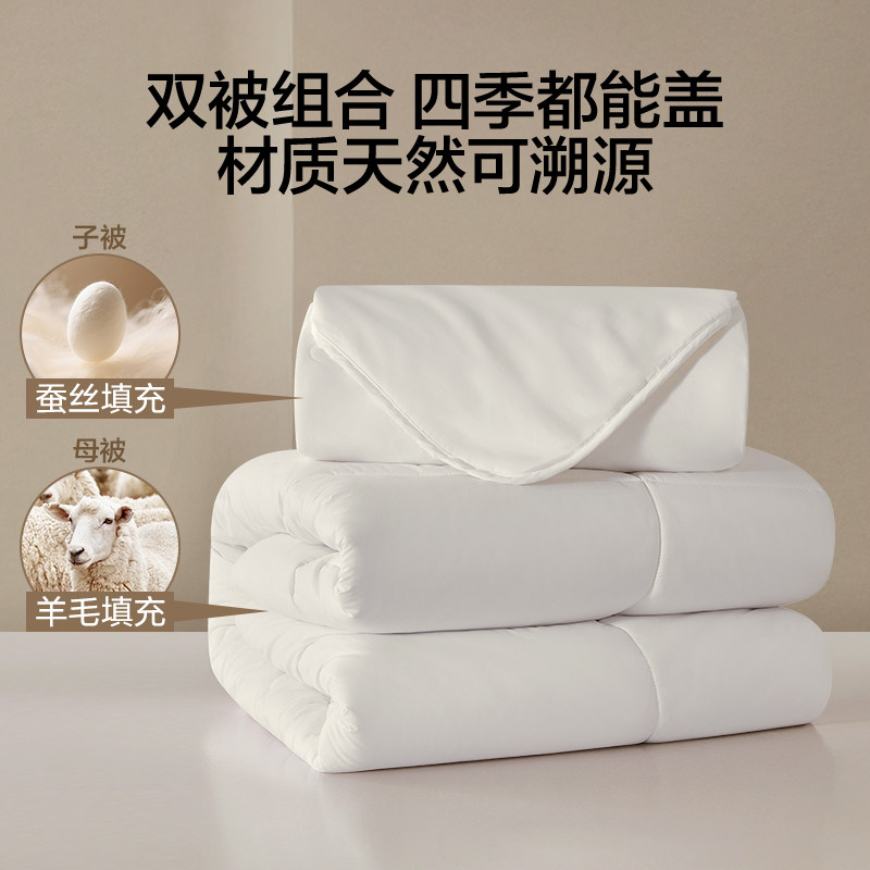 罗莱生活LOVO100%蚕丝羊毛子母被