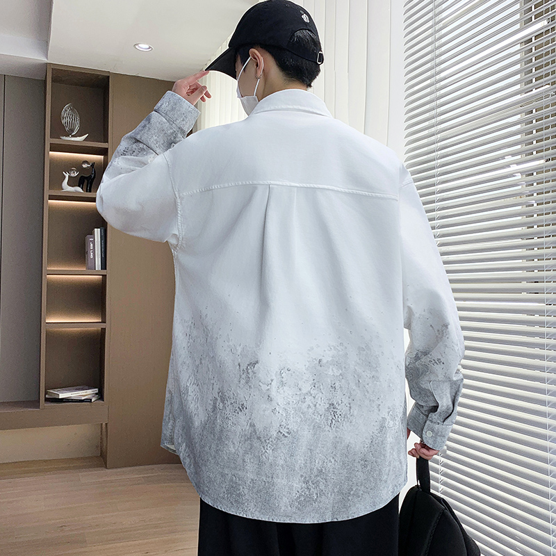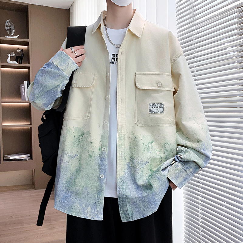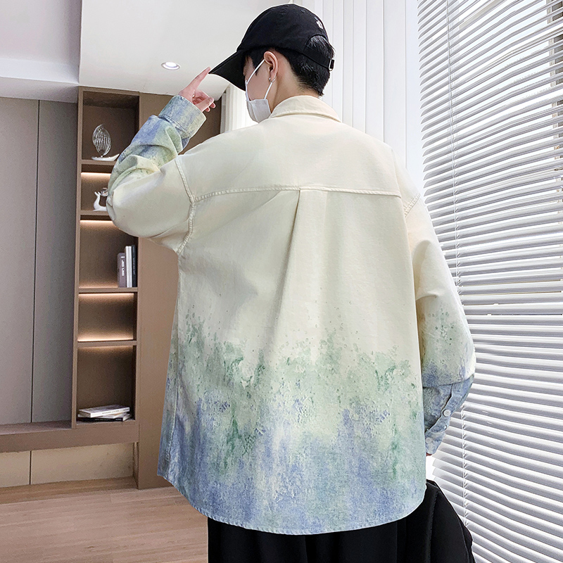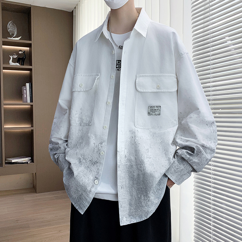 衬衫式夹克男款2026新秋季渐变印花外套男青少年纯棉休闲衬衣以純