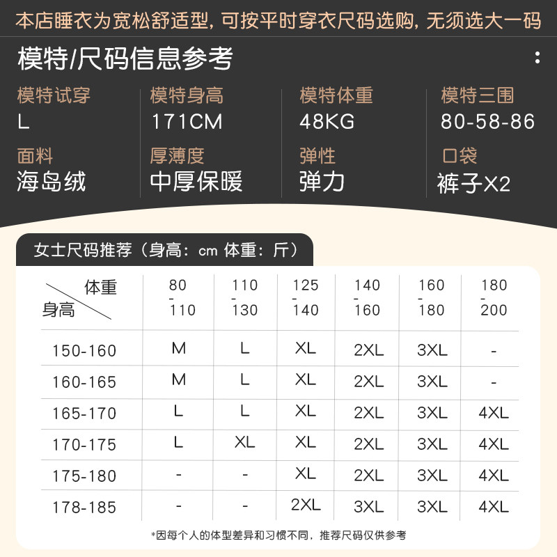 轩靓睡衣女士冬季加绒加厚珊瑚绒时尚海岛绒家居服春秋款保暖套装