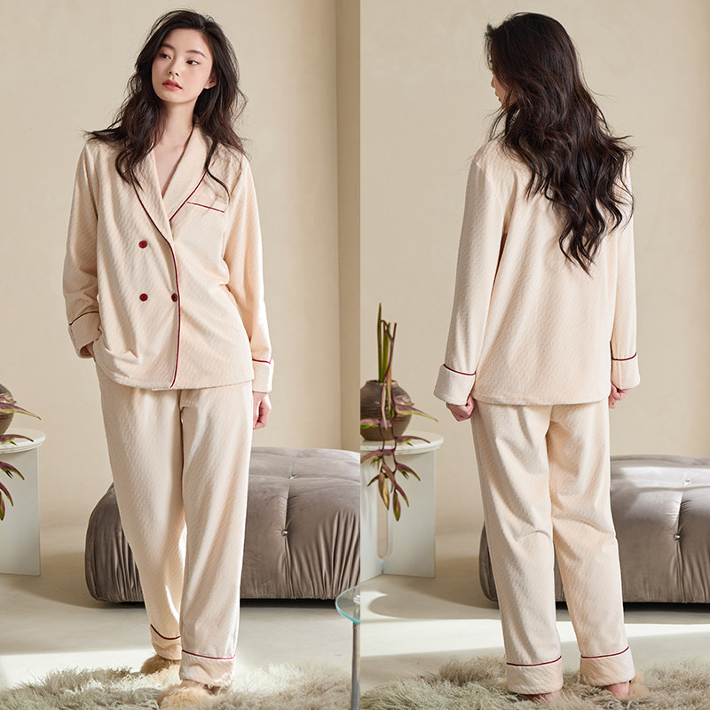 轩靓海岛绒睡衣女冬季加绒加厚