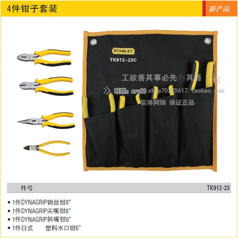 STANLEY/史丹利 4件钳子套装钢丝钳尖嘴钳斜嘴钳水口钳 TK912-23C