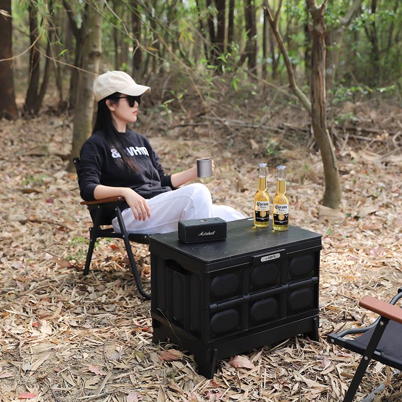 户外露营折叠收纳箱木盖工业风黑色咖啡桌多功能储物箱车载后备箱