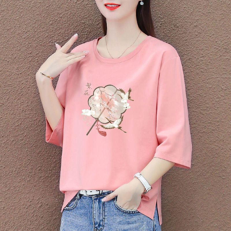 2025新款春季纯棉中袖上衣女五分袖韩版宽松半袖t恤女打底衫ins潮