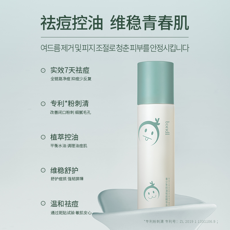 Tondi青少年祛痘护肤品精华水淡化痘印控油爽肤水女补水保湿男士