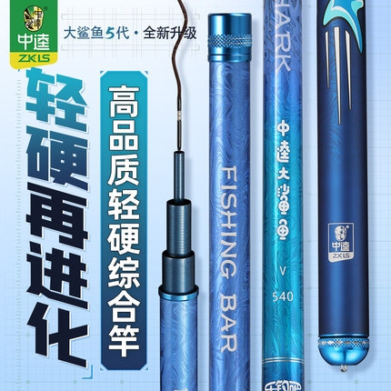 中逵大鲨鱼五代鱼竿手竿鲫鲤杆28调超轻超硬综合竿新款4.5H台钓竿