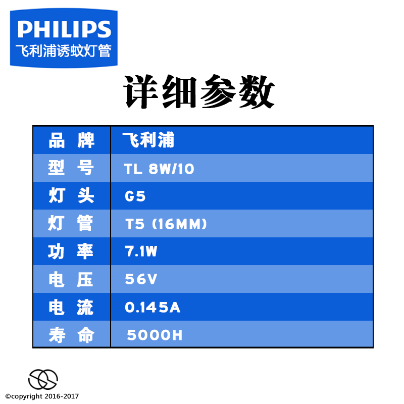 PHILIPS 飞利浦TL 8W/10 T5 UVA 365NM进口捕蚊诱蚊灭蚊灯替换灯