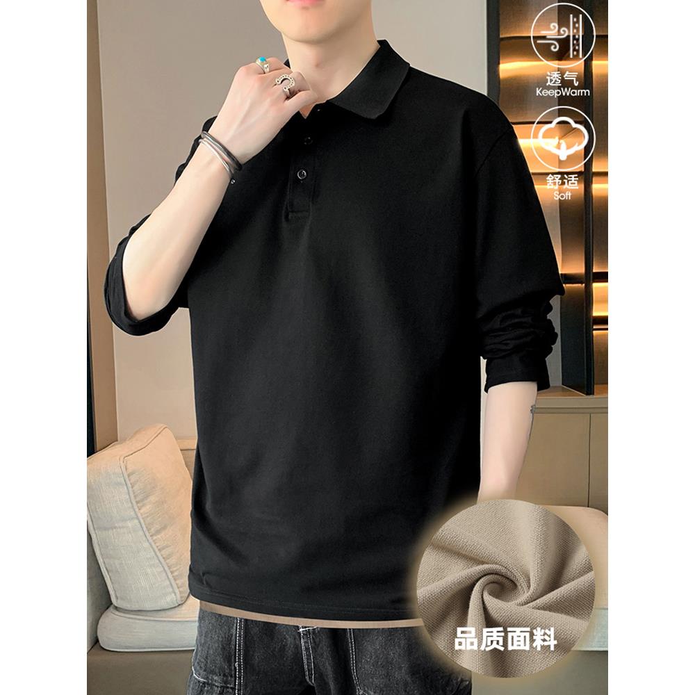 以纯polo衫男士秋冬假两件百搭翻领打底衫美式休闲长袖上衣男