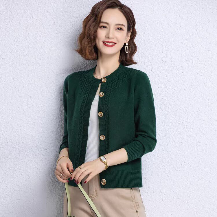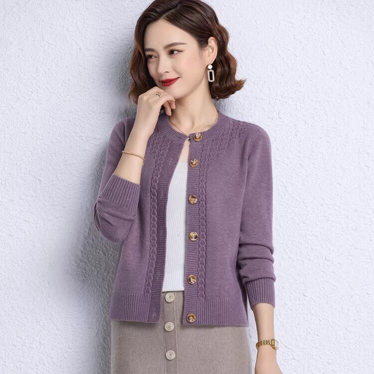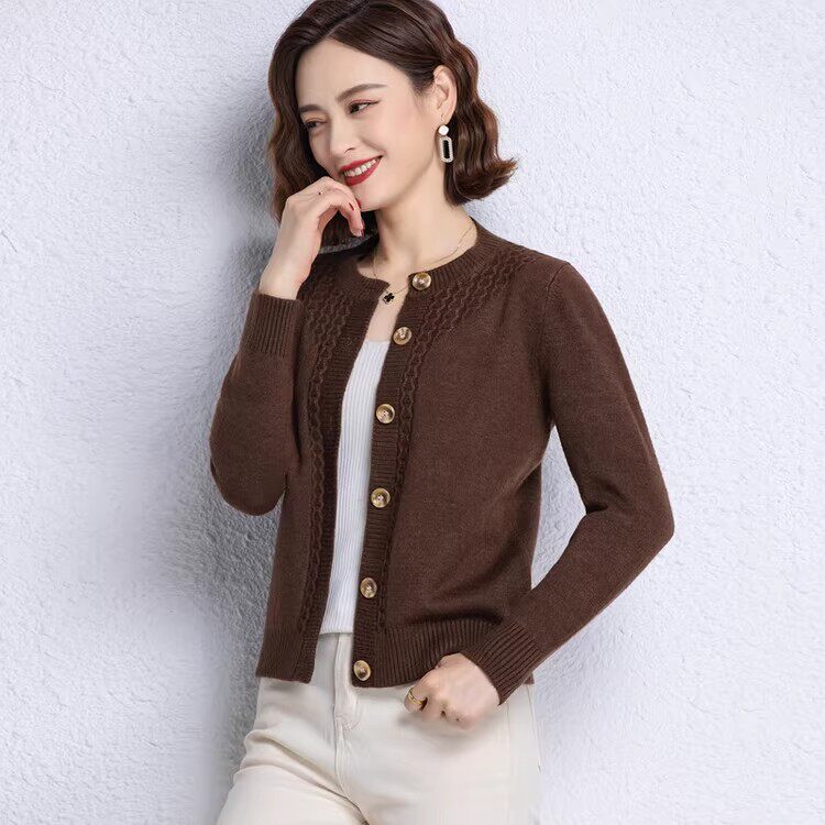鄂尔多斯市短款针织开衫女士秋冬外搭上衣小个子气质妈妈羊绒毛衣